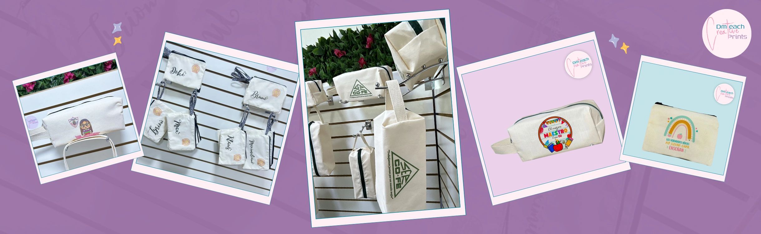 Elaborados con tocuyo de calidad y estampado por sublimación duradera, son ideales para productos de cuidado personal, maquillaje o kits promocionales.